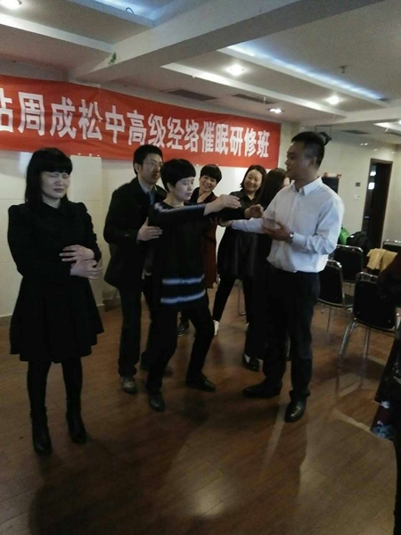 在最后的一个练习中,有个别老师因为情绪引起身体不适,周老师临时增加了催眠调理脊椎与相关经络的应用,经过临床示范,这些老师十分钟后就感到身体和情绪的愉悦。这让很多学员在练习中非常的感兴趣。具有简单有效的实操性。
