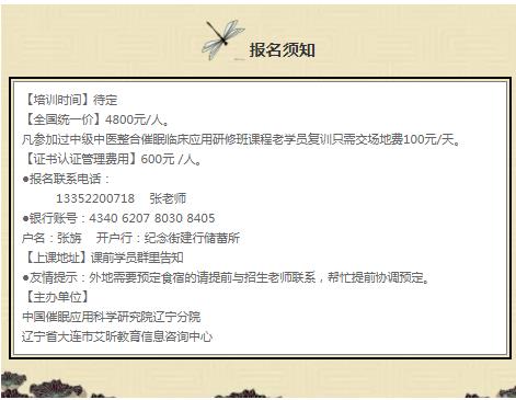 周成松导师大连中医整合催眠临床应用中级班招生简章